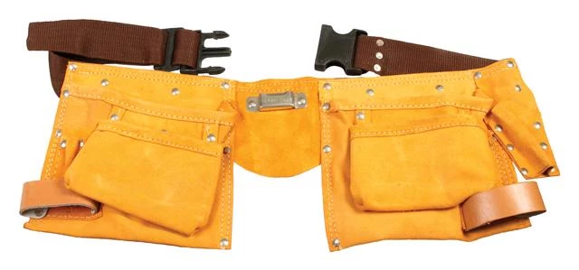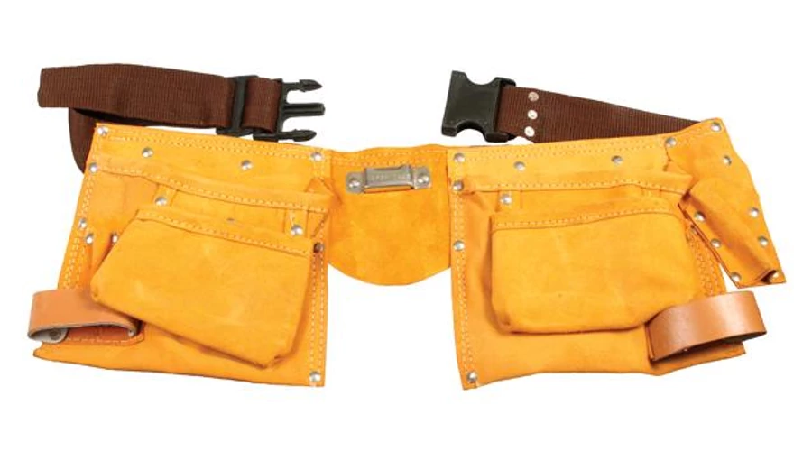 Bőrből készült, 11 részes szerszámos övtáska a gyakran használt szerszámok kényelmes tárolására. |