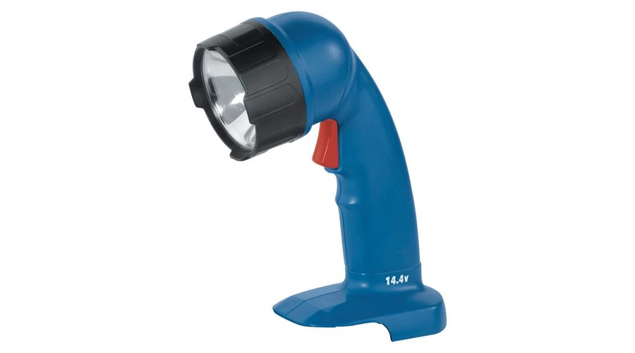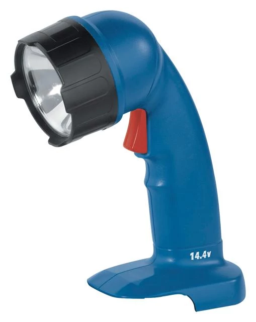FL 14VP1 típusú, akkumulátoros, 14,4 V-os szerelő lámpa, kék színben, egyszerű felépítéssel, akkumulátor nélkül.