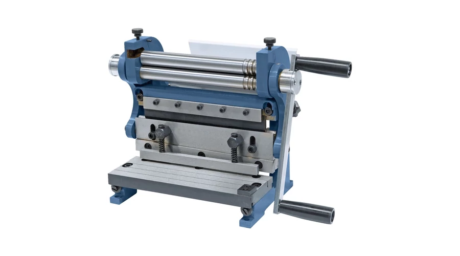 Univerzális gép körhajlításhoz, élhajlításhoz és vágáshoz egyaránt. Lemezhajlító, lemezvágó és lemezhengerítő egyben.