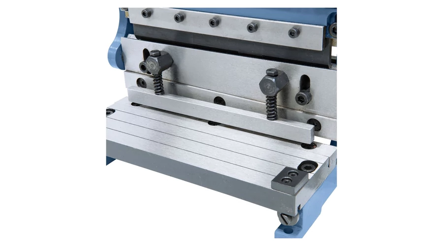 Állítható hátsó ütközőt és élhajlító szegmenst tartalmaz.