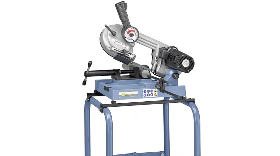 Profi barkácsolóknak tervezett, hordozható fémipari szalagfűrész profi kivitelben.