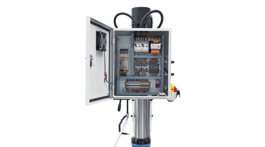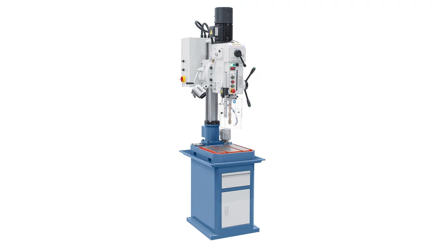 Ipari oszlopos fúrógép 40 mm-es maximális fúrási teljesítménnyel és menetvágó funkcióval. |
