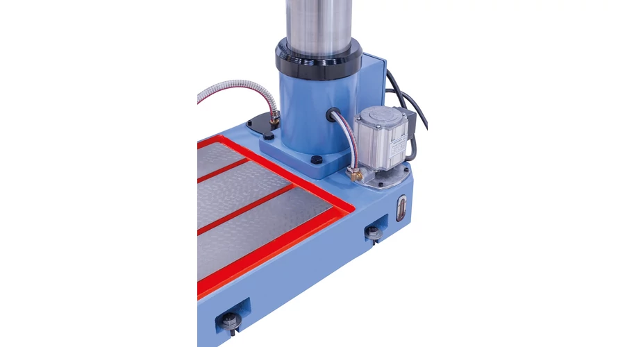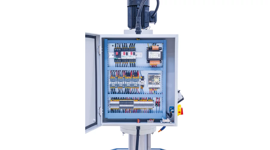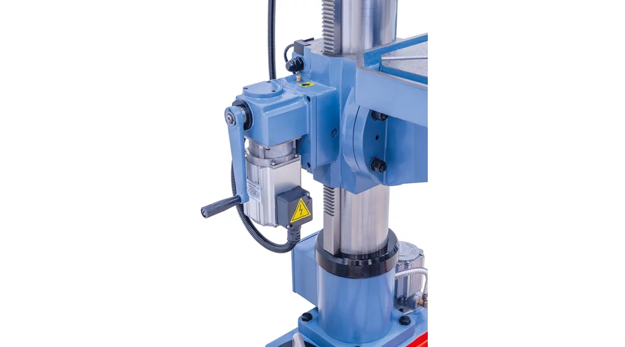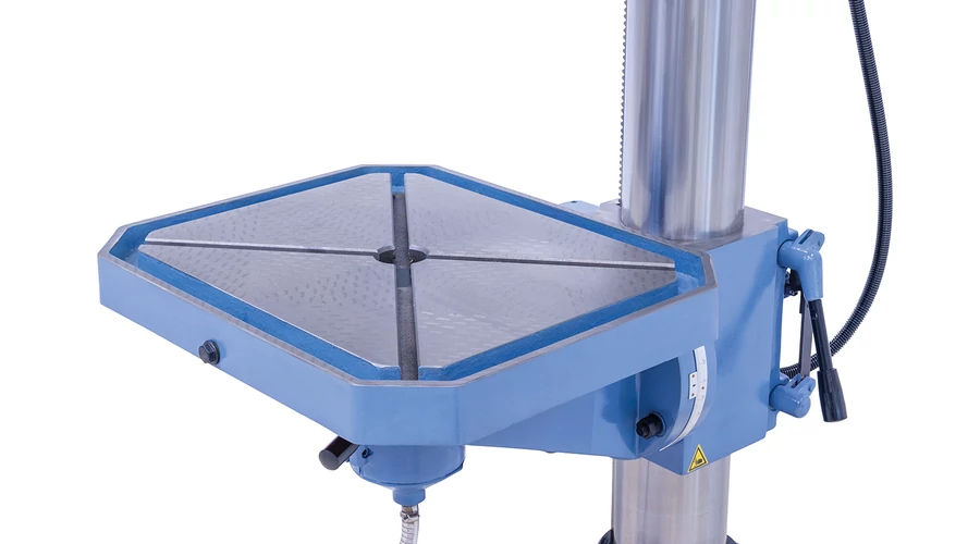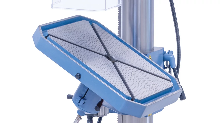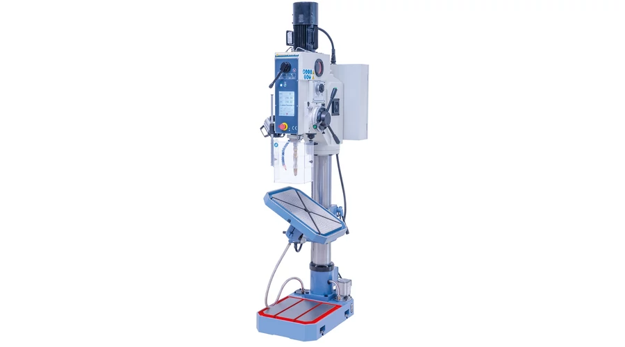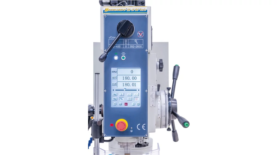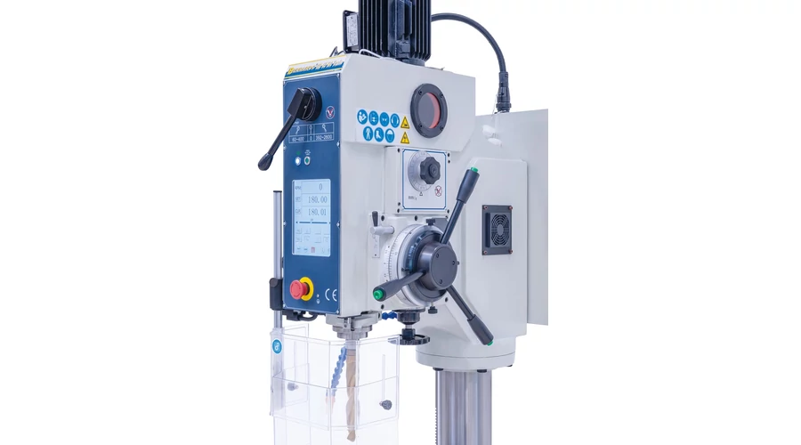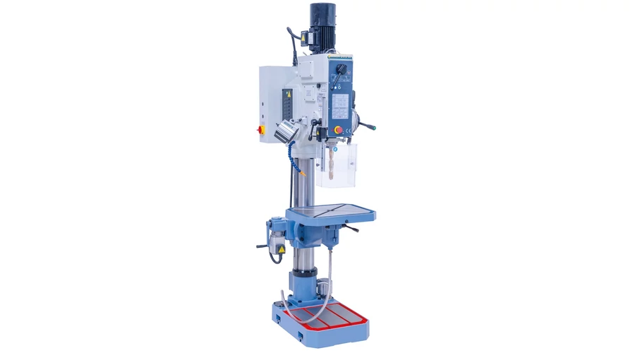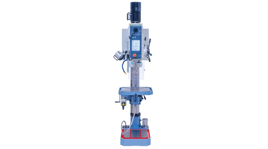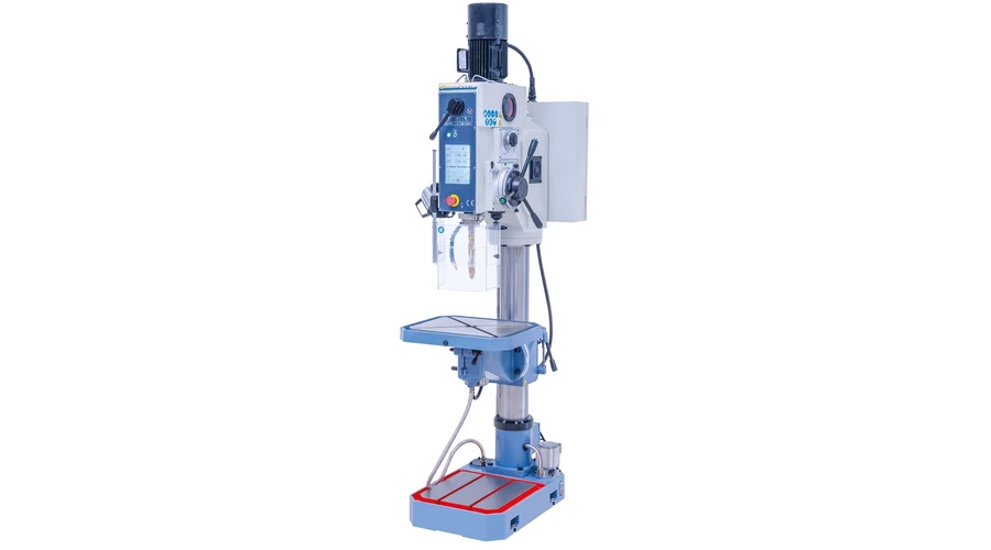 A hajtóműves fúrógép GB 45 NC Vario sorozatszerűen motorikus asztalemelkedéssel van kialakítva. A fúrásmélység, ill. fordulatszám digitális mutatója, az elektromechanikai orsóelőretolás, valamint a fokozatmentes fordulatszám szabályzó által felértékelődik a gép. |