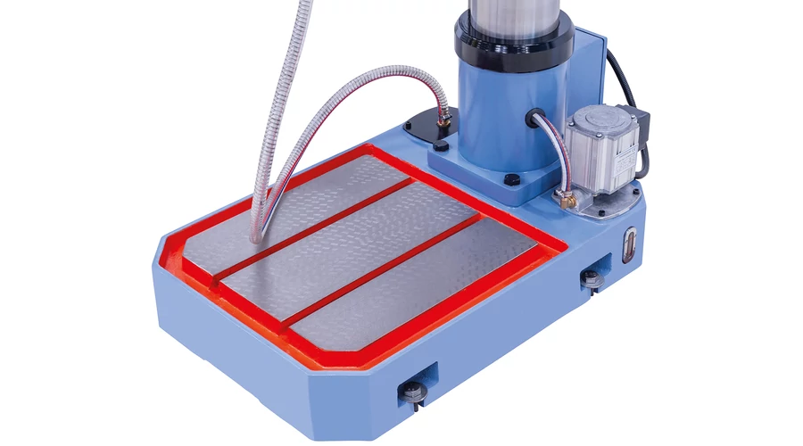 Kidolgozott géplábazat (400 x 410 mm) integrált hűtőanyag pumpával.