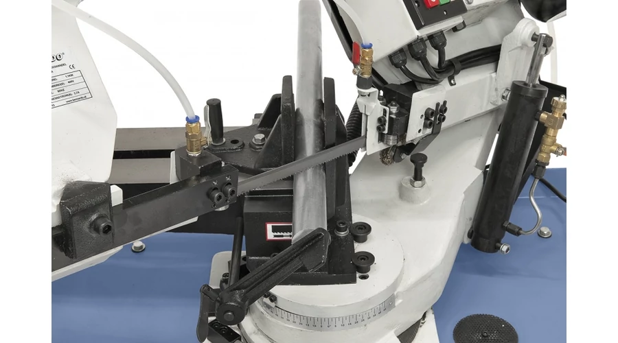 Kisipari felhasználóknak és profiknak tervezett, magas minőségi követelményeknek is megfelelő, erős és megbízható fémipari szalagfűrész, amely gérvágások kivitelezésére is alkalmas. |