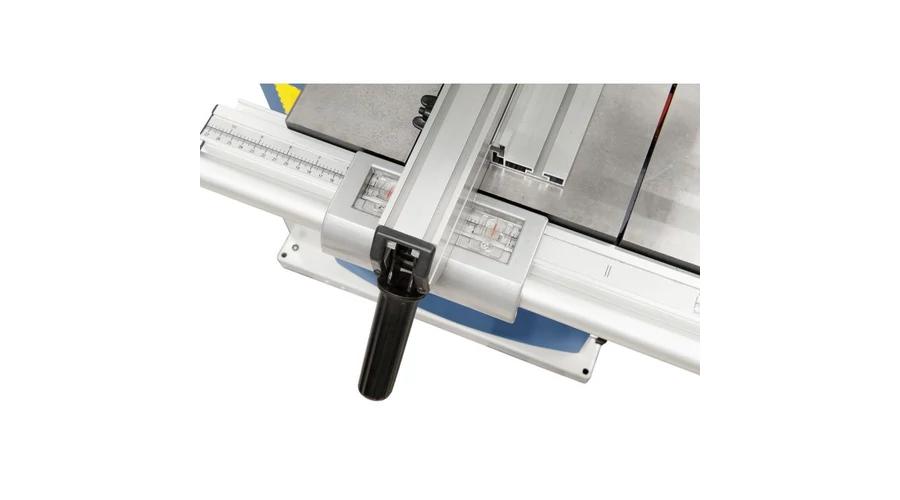 Precíz vezetésű hosszanti ütköző alumíniumból, minden helyzetben levehető.