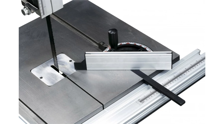 Precíz vezetésű hosszanti ütköző alumíniumból, minden helyzetben levehető.