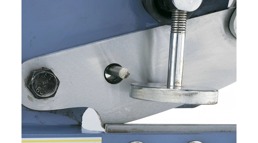 Masszív és erős kialakítású, minőségi, ipari felhasználásra tervezett lemezolló 205 mm-es késsel.