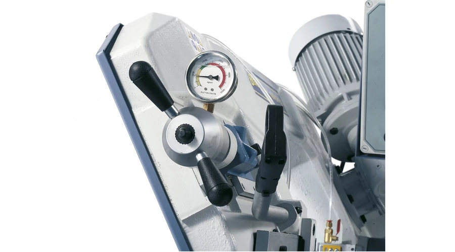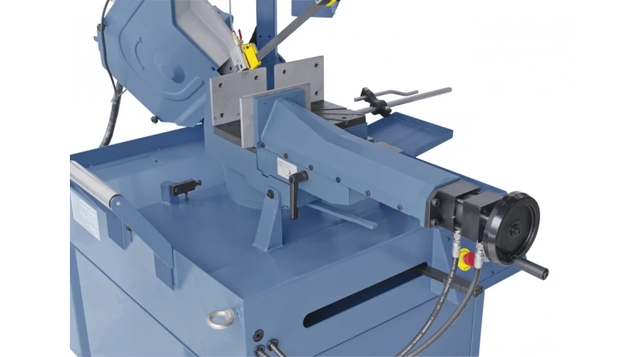 Profi, ipari felhasználásra készült, magas minőségű fémipari szalagfűrész 350x240 mm-es vágási tartománnyal, félautomata kivitelben. |
