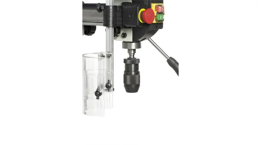 Profiknak tervezett, erős és megbízható radiál fúrógép 16 mm-es maximális fúrási teljesítménnyel, 400 V-os, 3 fázisú kivitelben, beállítható magasságú védőburkolattal. |