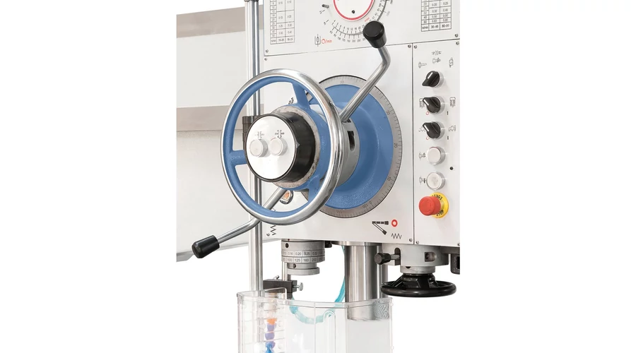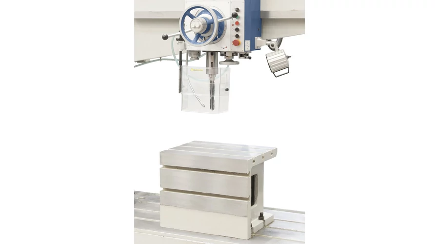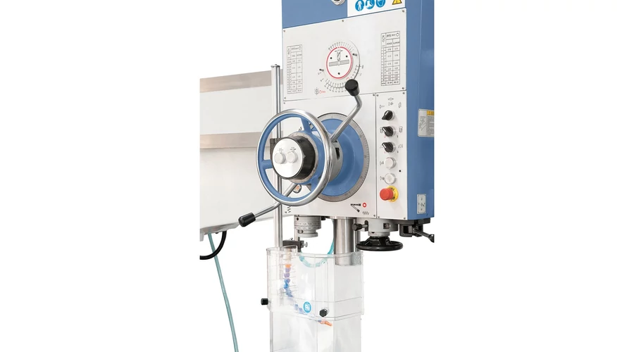 Ipari gyártásra és folyamatos termelésre készült, magas minőségű és erős kialakítású sugárfúró gép max. 50 mm-es fúrás kapacitással. |