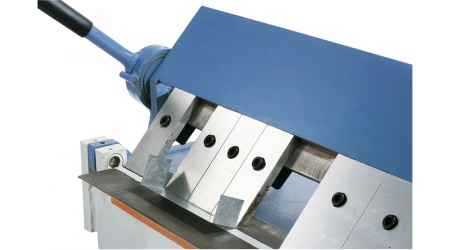 Minőségi, masszív, ipari felhasználásra készült élhajlító 1220 mm-es megmunkálási hosszúsággal. |