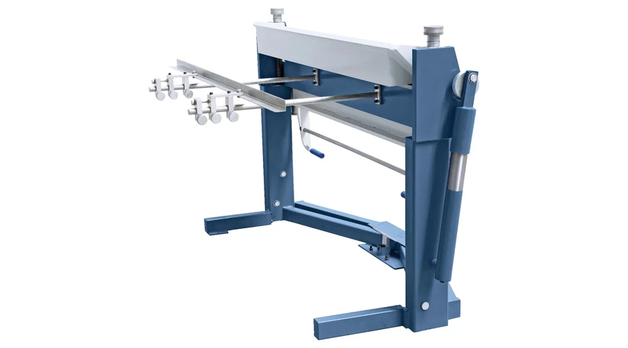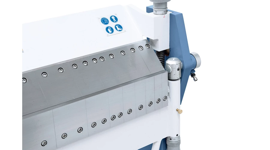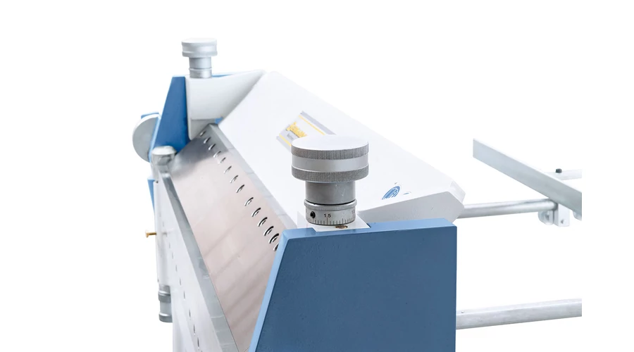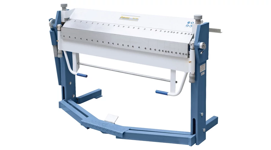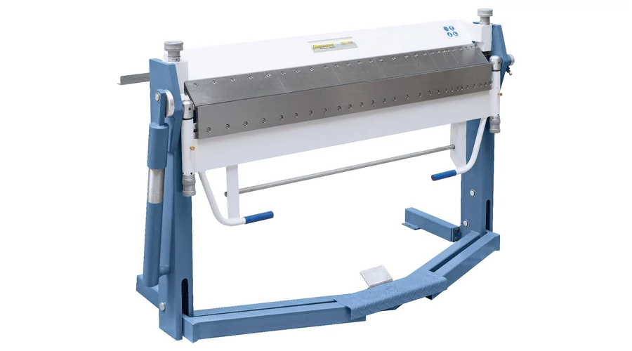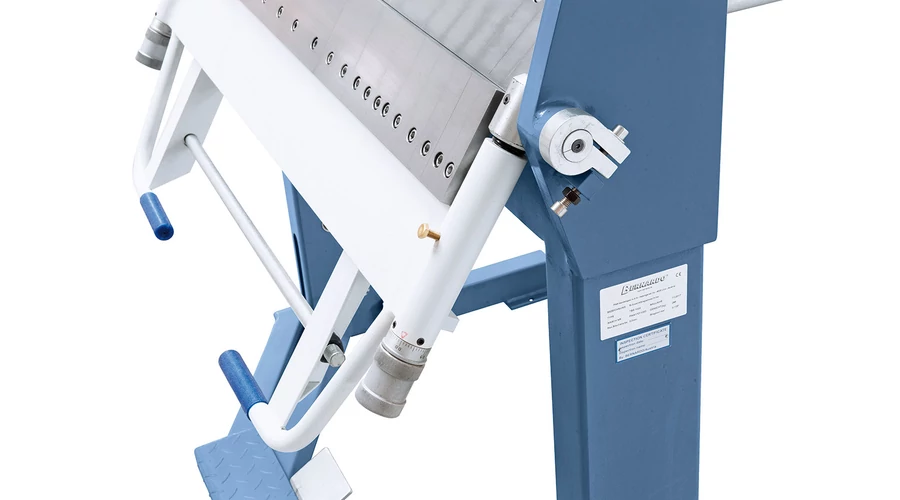 Masszív és erős kialakítású, minőségi, ipari felhasználásra tervezett, kézi élhajlító 1500 mm-es megmunkálási hosszúsággal.