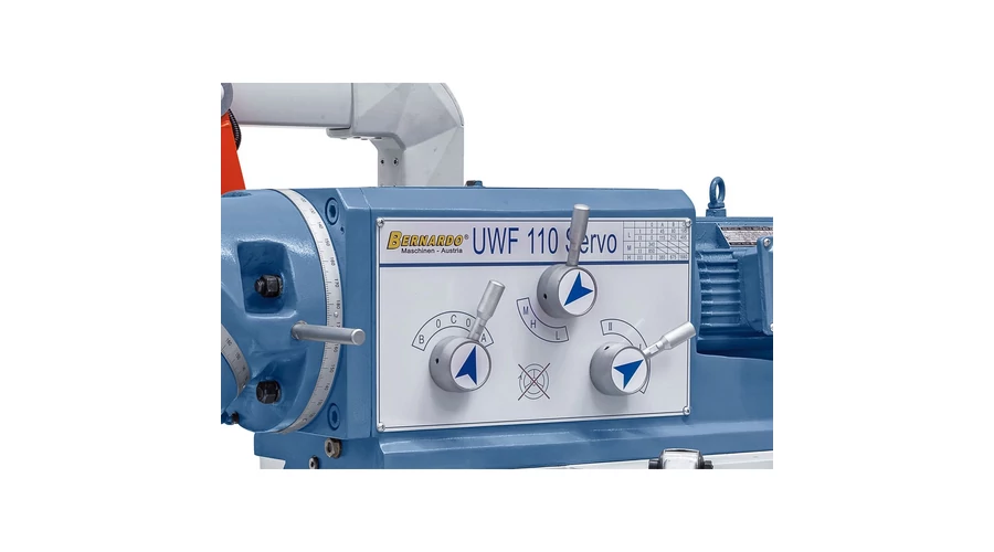 Felsőkar áttekinthetően felépített kapcsolási hajtóművel az orsó-fordulatszámhoz.