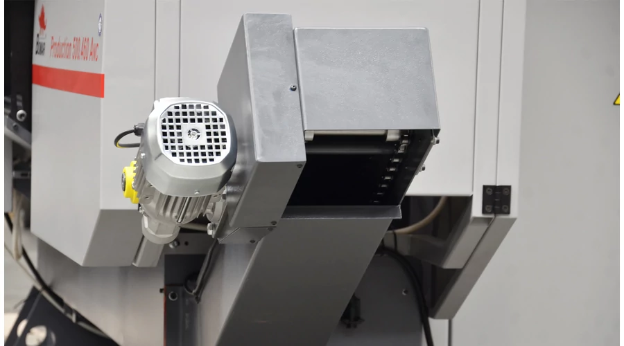 A kiváló teljesítmény köszönhető a háromoldalas, precíziós, keményfém szalagvezetőknek, a 41 mm magas fűrészszalagnak és a szinkron futó szalagtisztítókefének, mely a forgács eltávolításáért felelős.
