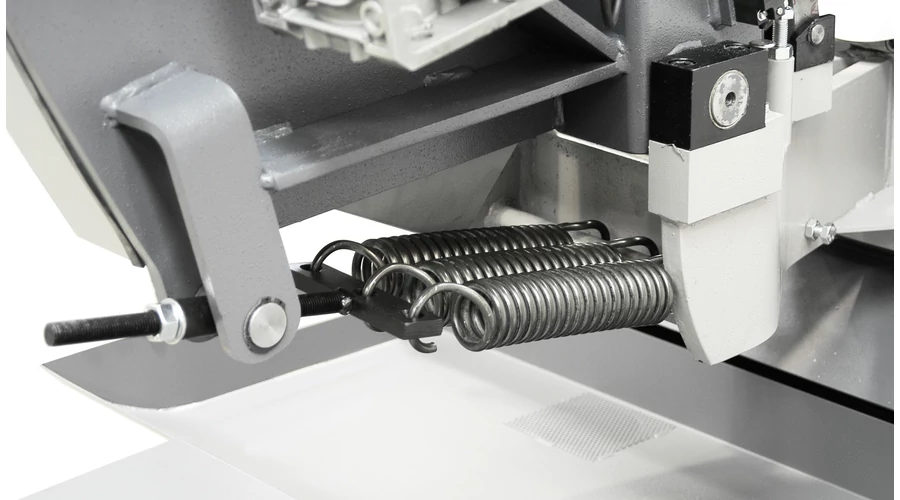 A fűrészkeret süllyesztése egy hidraulikus munkahengeren keresztül, fokozatmentesen szabályozható a precíz végeredmény érdekében.