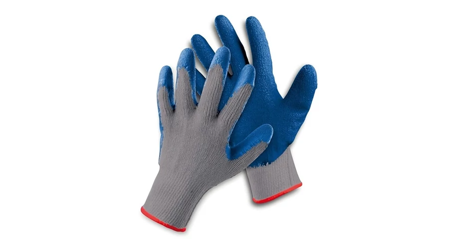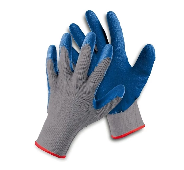 Profi minőségű, ipari célokra is alkalmas, kötött és kevert szálas, latex tenyérmártással ellátott, csúszásgátlós védőkesztyű, 10-es méretben, kék színben, rugalmas mandzsettával ellátva.