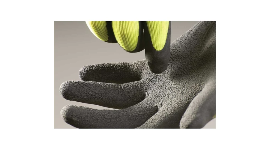 Profi szintű, kötött és kevert szálas, PES/pamut anyagból készült védőkesztyű latex impregnálással és extra latex bevonattal a tenyérrészen.
