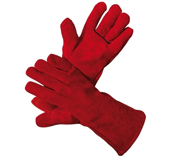 Profi minőségű, ipari felhasználóknak készült, színbőr hegesztő kesztyű hasított marhabőrből, piros színben. Bármilyen hegesztési feladathoz használható, 33 cm hosszúsággal rendelkezik, továbbá EN 12477(TYPE A), "Hegesztők védőkesztyűi" szabvánnyal, EN 388(2132X), "Védőkesztyűk mechanikai kockázatok ellen" szabvánnyal, valamint EN 407(313X3X), "Termikus kockázatok (hő és/vagy tűz) ellen védő kesztyűk" szabvánnyal is.