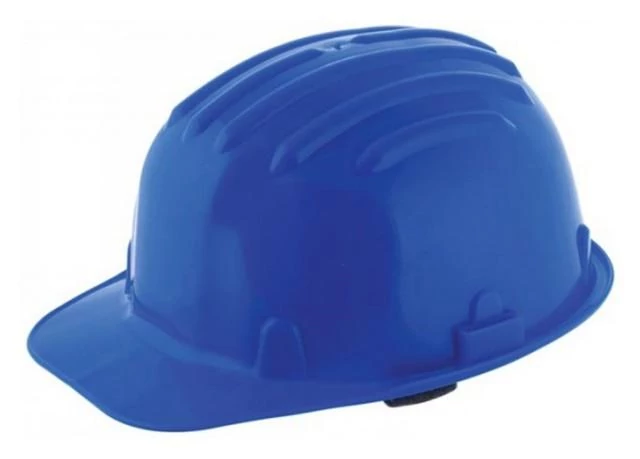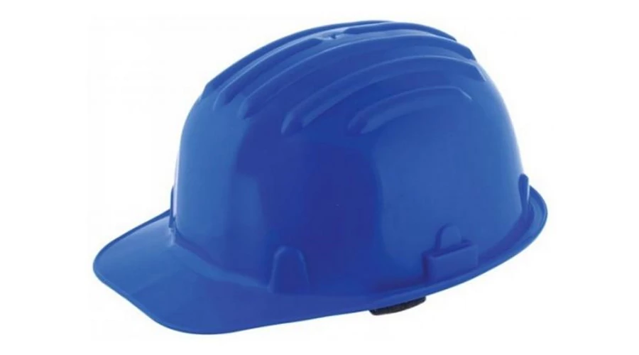 Kék színű, HD polietilén anyagból készült munkavédelmi sisak. |