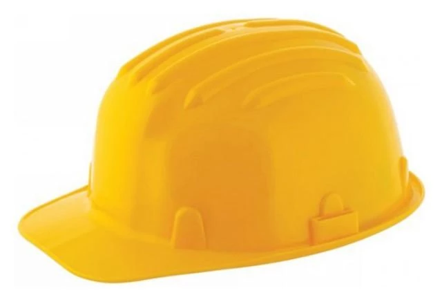 Sárga színű, HD polietilén anyagból készült munkavédelmi sisak. |