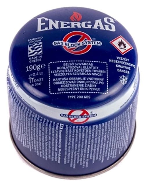 Szelepes, eldobható gázpalack, kompatibilis 190 g-os palackról üzemelő készülékekkel. |
