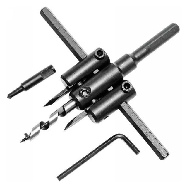30-120 mm átmérőjű furatok elkészítéséhez alkalmas körkivágó központosító fúróval. Alkalmas fa, gumi, gipszkarton, műanyag megmunkálására.