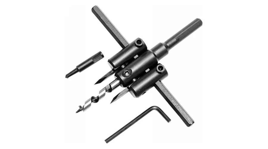 30-120 mm átmérőjű furatok elkészítéséhez alkalmas körkivágó központosító fúróval. Alkalmas fa, gumi, gipszkarton, műanyag megmunkálására.