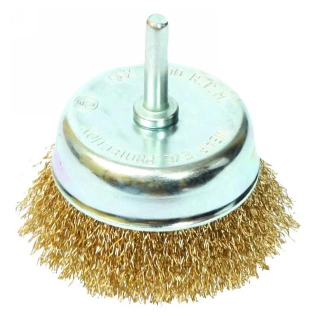 65 mm átmérőjű sárgarézből készült csapos fazékkefe. Alkalmas fém felületeken történő rozsda, festék, lakk eltávolítására, csiszolásra és tisztításra. Fúrógépeken és gyorsan forgó elektromos szerszámokon való használatra. |