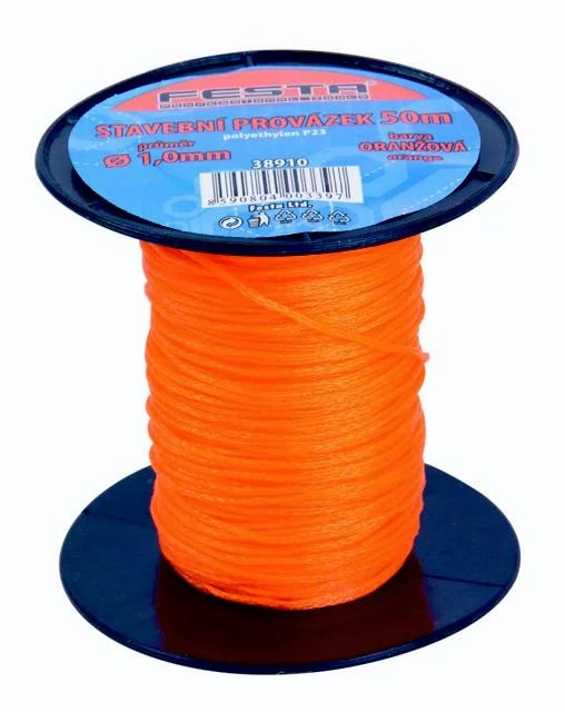 Sokfélén felhasználható jelölő zsinór, narancssárga színben, 50 fm hosszúsággal és 1,7 mm-es vastagsággal.
