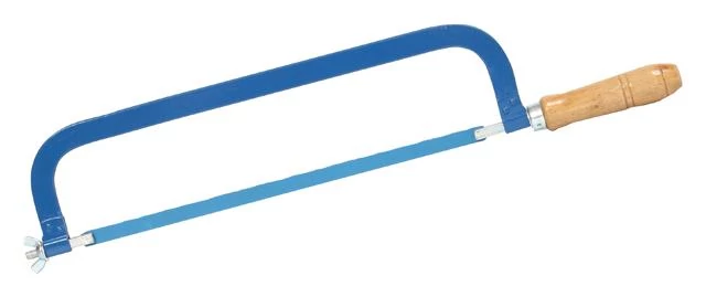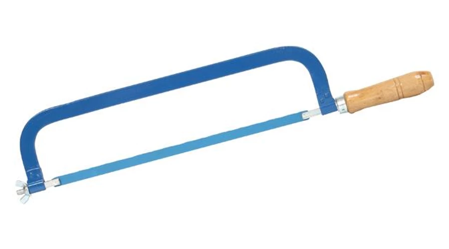 Keretes fémfűrész 300 mm-es fémfűrészlappal és fa fogantyúval.