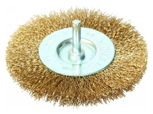 100 mm átmérőjű, sárgarézből készült csapos körkefe. Alkalmas fém felületeken történő rozsda, festék, lakk eltávolítására, csiszolásra és tisztításra. Fúrógépeken és gyorsan forgó elektromos szerszámokon való használatra.