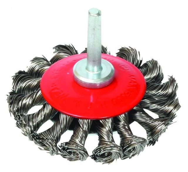75 mm átmérőjű, acélból készült csapos, döntött körkefe. Alkalmas fém felületeken történő rozsda, festék, lakk eltávolítására, csiszolásra és tisztításra. Fúrógépeken és gyorsan forgó elektromos szerszámokon való használatra.