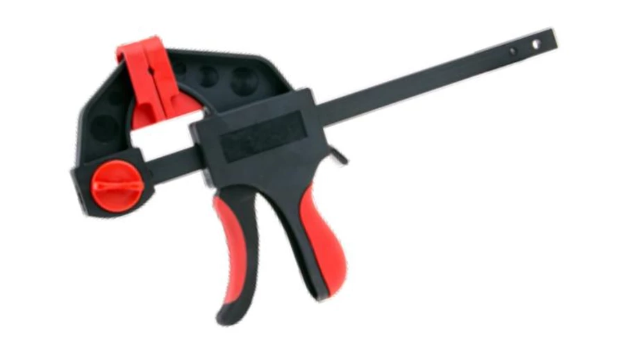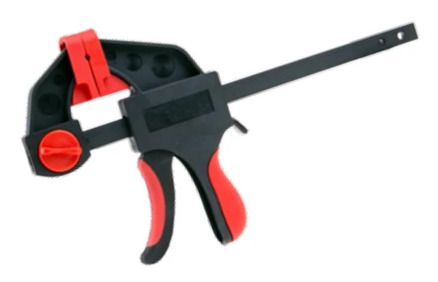 Asztalos szorító, ami lehetővé teszi az egykezes munkavégzést. A biztonság és kényelem érdekében csúszásmentes markolattal van ellátva. |