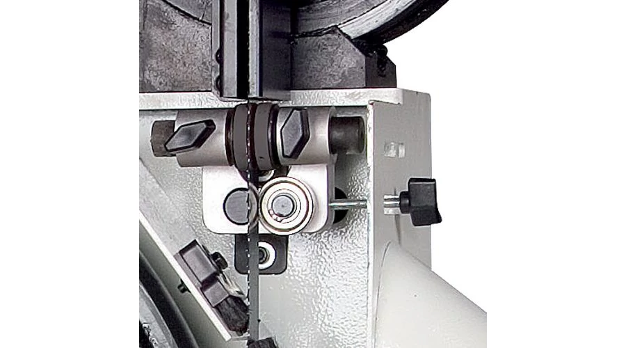 Az alsó fűrészszalag-vezető precíziós vezetőgörgőkkel és finombeállítási lehetőséggel is fel van szerelve.