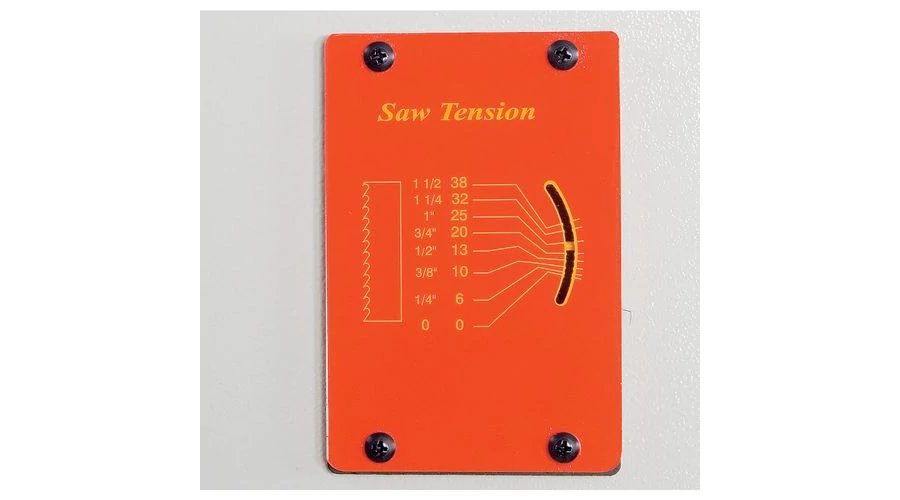 A fűrészlap feszességének kijelzése a gépvázba integrálva, különböző fűrészlap szélességekhez.
