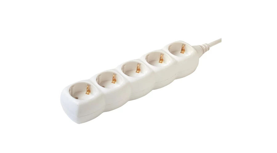 Beltéri, hálózati elosztó 1,5 m kábellel, 5 db földelt csatlakozós aljzattal megbízható és minőségi kivitelben, fehér színben. |