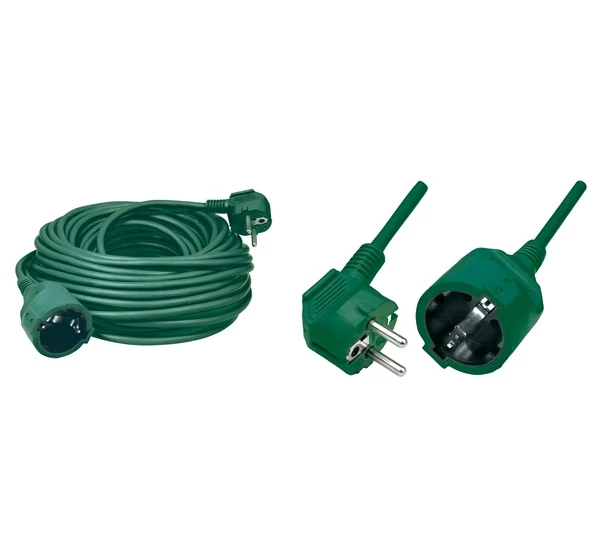 Masszív, hálózati hosszabító kábel általános használatra tervezve, zöld színben.