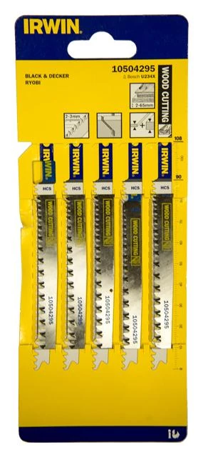 115 mm hosszú, HCS anyagminőségű dekopírfűrészlap fára, U-szárral. 3 oldalú köszörült fűrészfogak a gyors, egyenletes és tiszta vágás érdekében. Fogosztás: 8-13 TPI. A csomag 5 db fűrészlapot tartalmaz. |