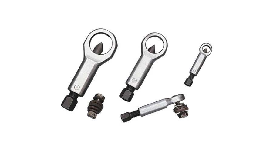 Süllyesztékes kovácsolással, edzett és nemesített bevonattal készült, tartós és megbízható sérült anyacsavar levágó készlet.