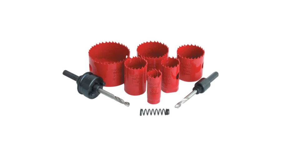 Ipari, professzionális felhasználásra készült, karbantartóknak és szerelőknek tervezett lyukfúró készlet 9 db-os kiszerelésben. |