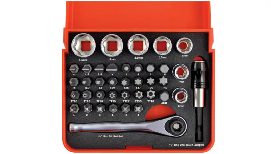 Metrikus bit- és dugókulcs készlet 39 db-os kiszerelésben, króm-vanádium acélból, ipari felhasználásra, racsnis kivitelben és a szabadalmaztatott Ken-Grip felépítésű dugókulcs rendszerrel. |