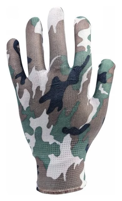 Terep mintás, szürke, szövet kertészkesztyű 8-as méretben. Kerti munkálatokhoz és egyszerűbb feladatokhoz kiváló védelmet nyújt a kéz számára.
