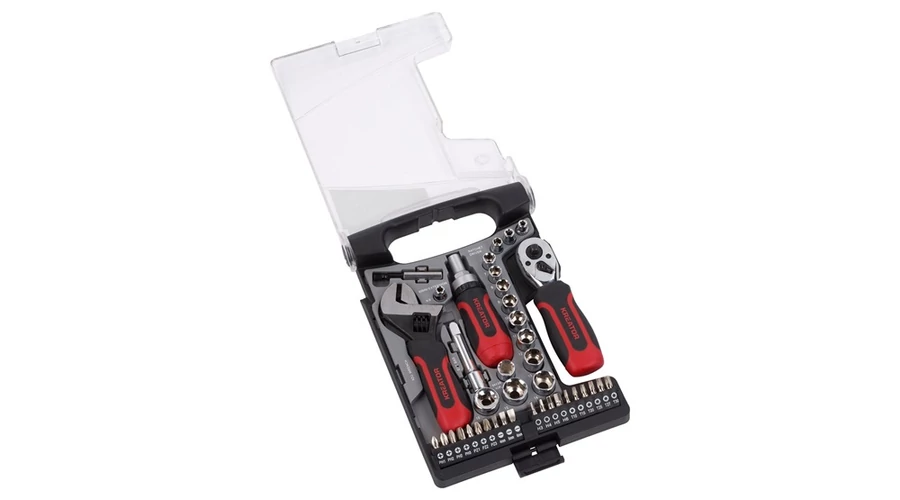 Profi felhasználóknak készült, 40 részes dugókulcs készlet 1/4" és 3/8"-os dugókulcsokkal. |