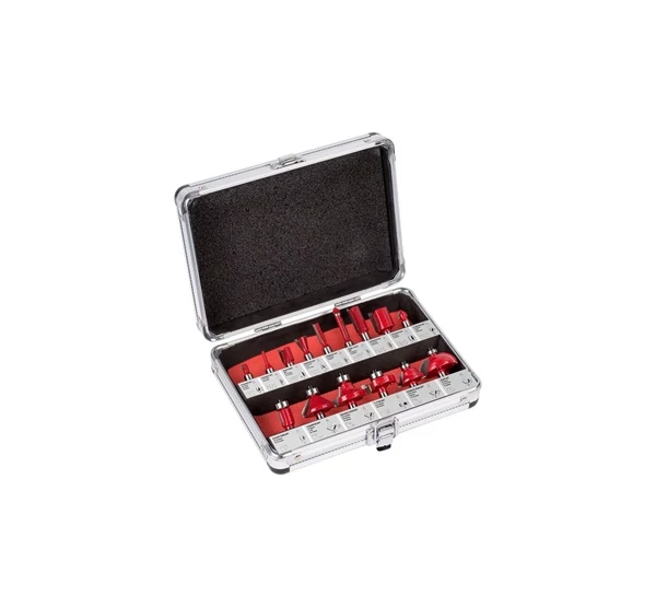 Minőségi alumíniumkofferes marófej készlet, 15 db-os kivitelben. |