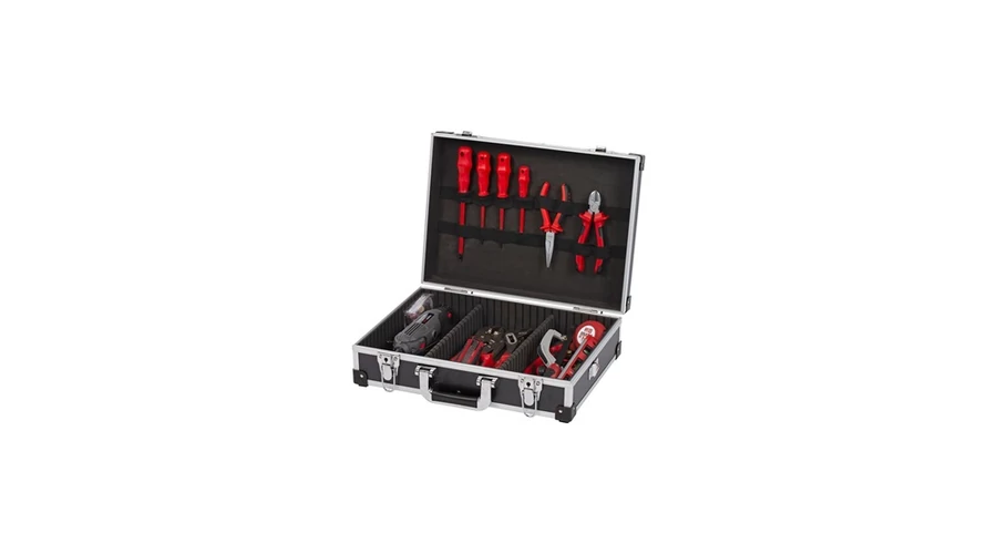Alumínium kerettel ellátott, minőségi tárolódoboz, melyben kényelmesen elhelyezhetőek a kisebb és nagyobb szerszámok is.