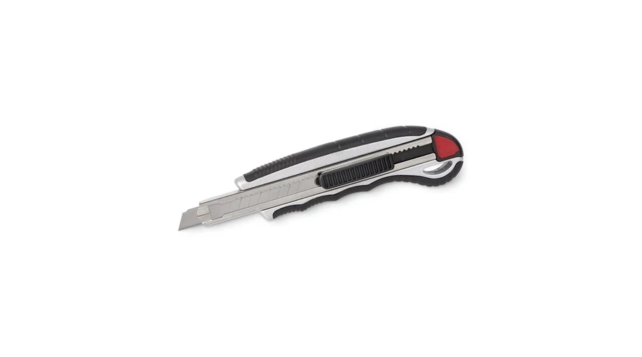 Minőségi, alumínium házas, törhető pengéjű kés SK5 típusú alapanyagból készült acél pengével. A kompakt alumínium házba beépített pengetároló található, mely automatikusan képes betölteni a következő pengét. Automata zárral rendelkezik, így használata gyorsabb és egyszerűbb a hagyományos sniccerekhez képest. A termékhez 1 db + 4 db tartalék, törhető penge tartozik.