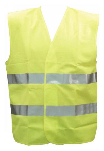 Sárga színű, jólláthatósági mellény fényvisszaverő csíkokkal. |