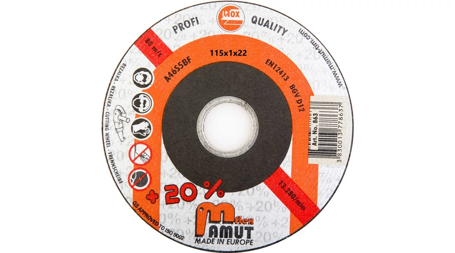 MAMUT TIM furatos vágókorong - 115 mm átmérő, 1 mm vastagság, 22 mm furat