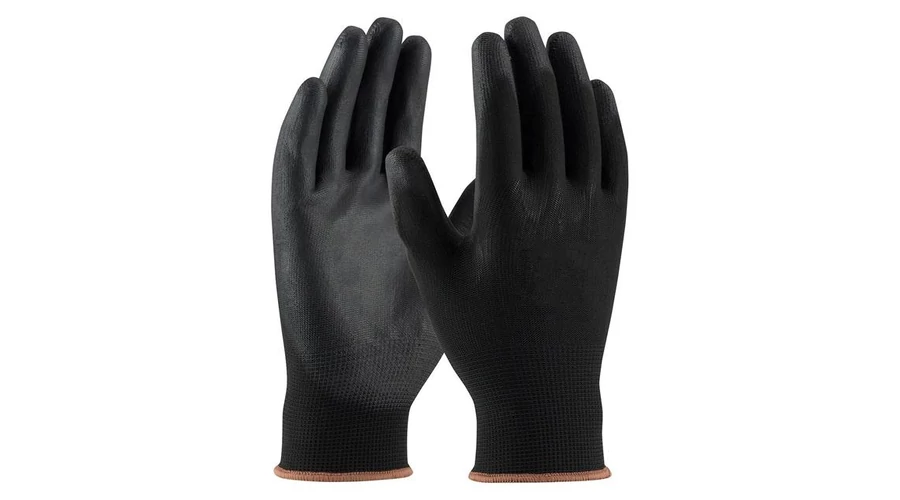 Általános felhasználásra, rakodásra, pakolásra, csomagolásra és hasonló feladatokra készült munkavédelmi kesztyű poliuretán mártott tenyérrésszel és ujjakkal.
